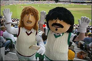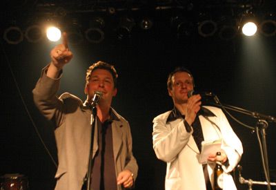 Was lange währt, wird endlich gut ... Nachdem der Vorsitzende des australischen ATK, Barry Humphries (Bild links), seit nunmehr 17 Jahren versuchte, den australischen Premierminister Les Patterson (Bild rechts) von der Nachhaltikkeit der ATK-Ziele zu überzeugen, trat dieser nun nach langem Bitten aber auch aus Überzeugung unserem Kollektiv als erstes Neumitglied des Jahres 2004 bei ... Gute Arbeit Barry ... Danke Les!