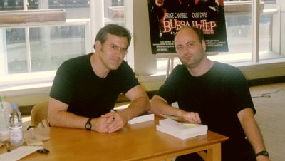 Anlässlich der Weltpremiere des neuen Kult-Films BUBBA HO-TEP organisierten die Kameraden des Canadian ATK (C-ATK) im Rahmen des diesjährigen "Toronto International Filmfestival" eine Signier-Stunde mit dem bekannten und beliebten B-Movie-Star Bruce Campbell. Diese Aktion bescherte dem C-ATK einen Zulauf von 400 begeisterten Filmfans, von denen sich sodann auch 37 nicht nur Bücher, Aktionfiguren und Motorsägen signieren liessen, sondern auch selber einen Mitgliedsantrag für den C-ATK unterschrieben. Das Foto zeigt Bruce Campbell zusammen mit Mitorganisator John Cabot (Präsident des C-ATK).