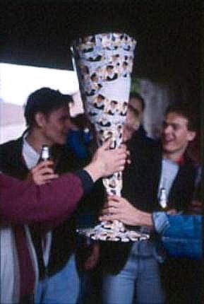 Vom Prominententeam der "T"rompete und vom neuen Bundestrainer des VFL (1987), Herrn Jogi Bär, wurde der ERSTE PLATZ an unseren altverdienten Kameraden Balthasar "Schwebe" Häsesonn für sein (vielleicht etwas mißratenes aber in der Grundidee gelungenes) Kostüm als "Addidas Teamgeist Ball ATK-Sonderedition" vergeben ... Gratulation und viel Spaß mit der neuen Digital-Kamera.