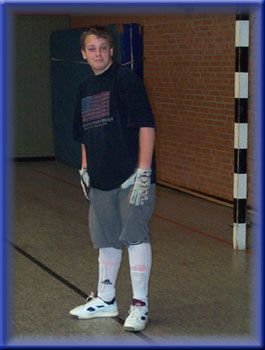 Unser Torwart Balthasar "Schwebe" Häsesonn bei einem Ausflug in seine zweite Lieblingssportart Handball